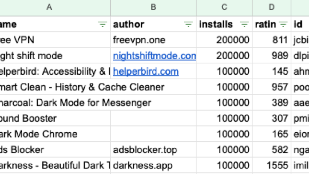 Unlock critical insights with the 2024 Top Chrome Extensions Dataset, meticulously curated for developers, investors, and marketers. This CSV dataset comprises 16,797 Chrome extensions, each boasting over 1,000 installs, offering a robust foundation for strategic decision-making.