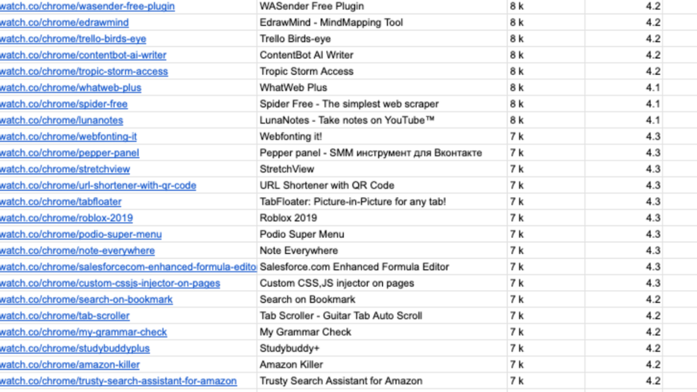 Why Choose Our Dataset: π― Unmatched Depth: With data on over 80,000 Chrome Extensions, our dataset offers an extensive scope, enabling you to explore a wide range of niches and functionalities. π Empower Your Strategy: Leverage user counts and reviews to refine your strategies, identify market gaps, and make data-driven decisions that propel your business forward. π Uncover Hidden Gems: Discover lesser-known but high-performing extensions that could revolutionize your workflow or improve user experiences.