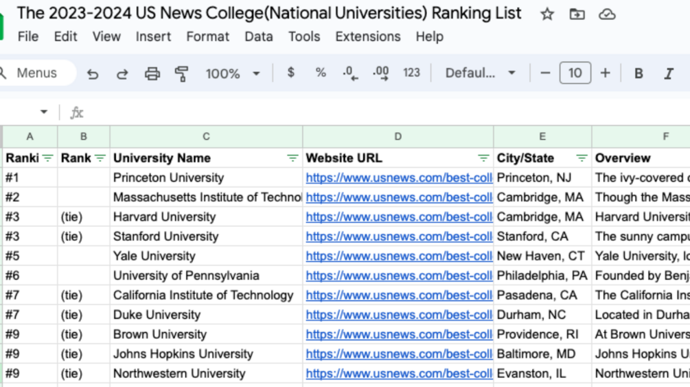 Click the button below to purchase and download the 2023-2024 US News College Ranking List in CSV format. Your journey to making informed decisions about higher education starts here!
